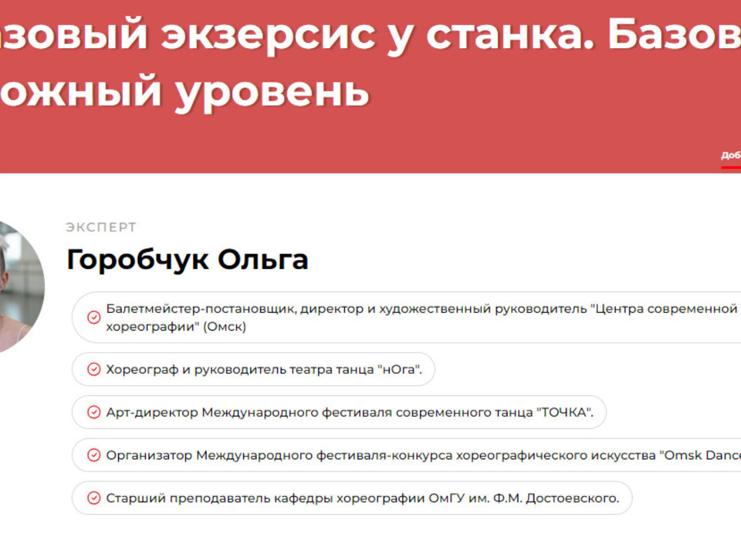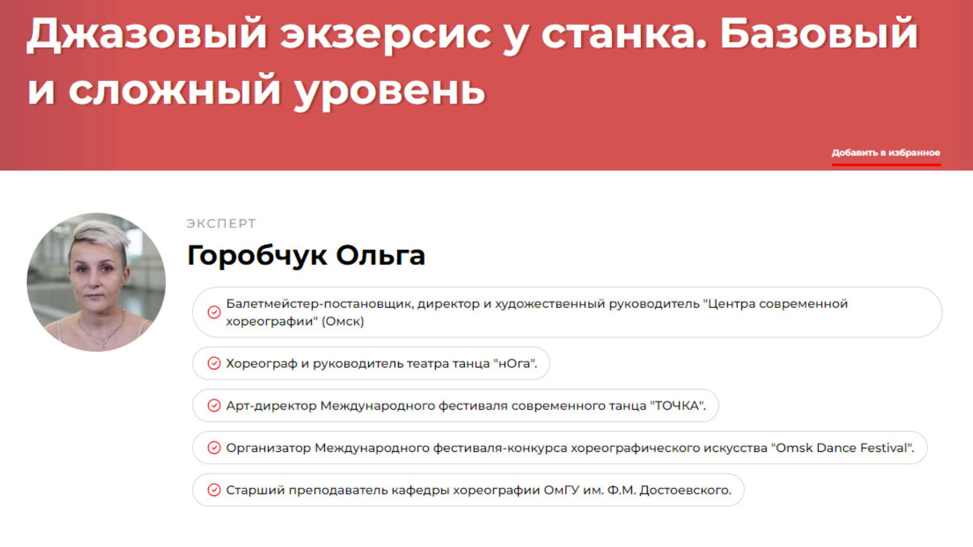 Отзывы о курсе «Джазовый экзерсис у станка. Базовый и сложный уровень» от Ольги Горобчук