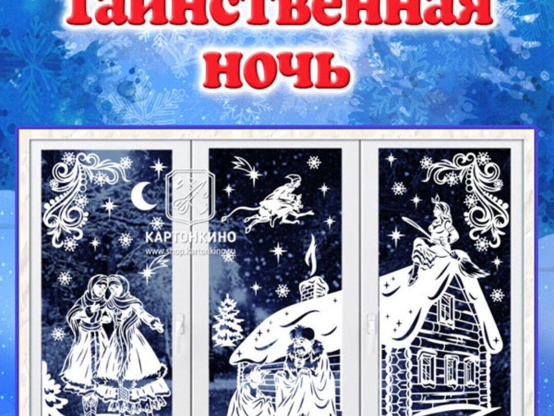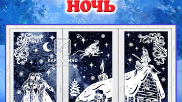 Данный набор шаблонов для вырезания из бумаги поможет изготовить эффектную композицию по мотивам повести Н.В. Гоголя «Ночь перед Рождеством» для украшения окна к Новому году или на повседневной основе в зимний период.