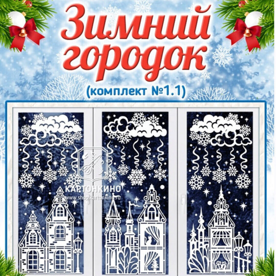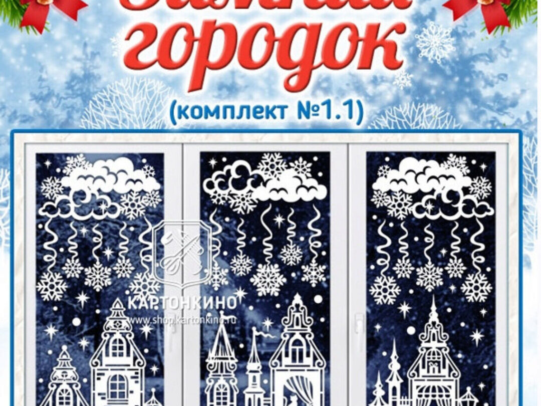 Данный набор шаблонов для вырезания из бумаги поможет создать чудесный зимний городской пейзаж для украшения окон к Новому году и Рождеству, а также на повседневной основе.