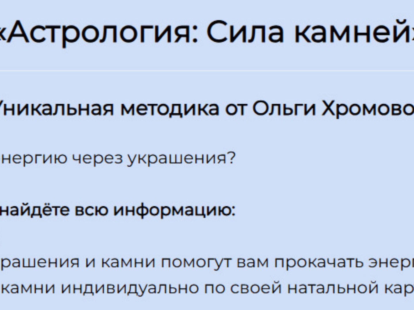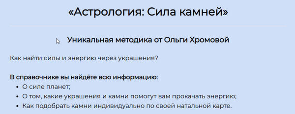 Отзывы о курсе «Методическое пособие Астрология: Сила Камней» от Ольги Хромовой