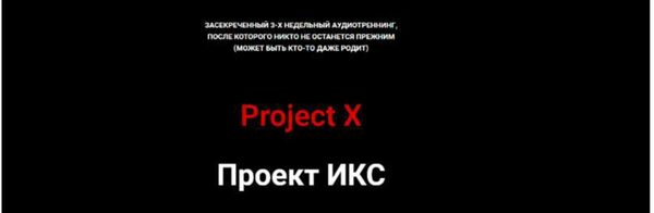 Проект Х засекреченный трёхнедельный аудиотренинг, после которого никто. не останется. прежним. Для чего создан Project X? Чтобы вырваться из привычной рутины и отправиться на поиски своей суперсилы. Приключение длинной в три недели! Чтобы твой путь изменений стал настоящим, захватывающим и