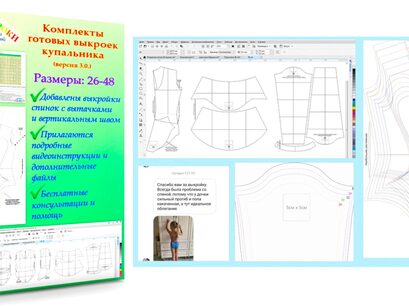 К примеру, если купальник будет без юбочки, или без рукавов - вы сможете распечатать только нужные части выкройки