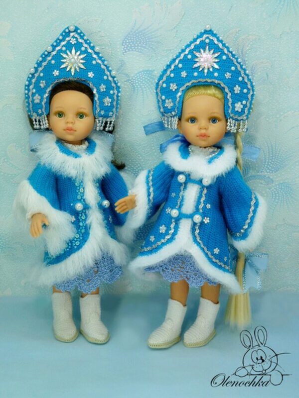 Ольга Корчагина PDF-журнал по вязанию крючком наряда «Снегурочка» для для кукол Паола Рейна слив скачать
