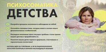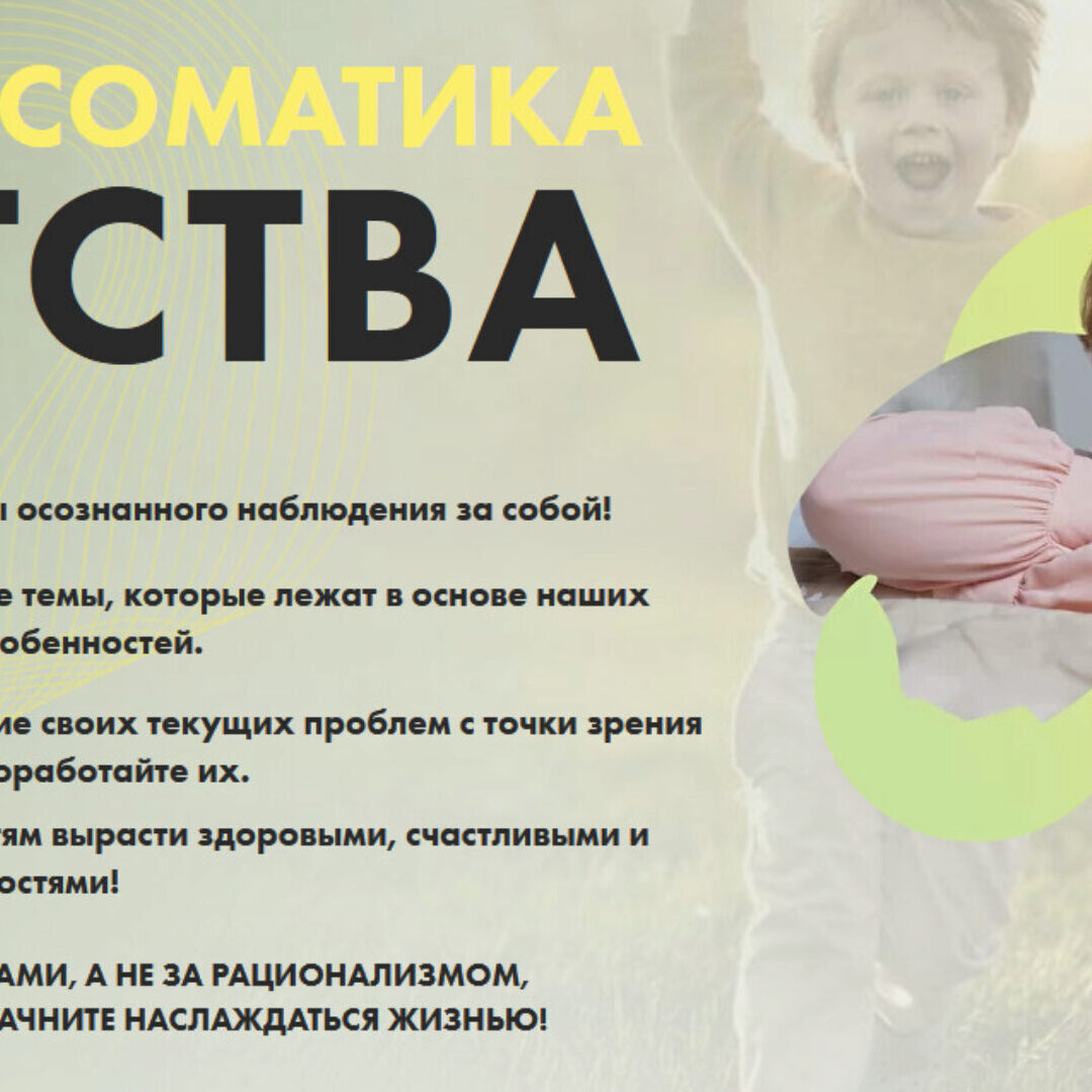 Этот курс для вас, если вы хотите: понять, что такое «психосоматика», как наше духовное тело создает искажения на уровне физического тела, видеть взаимосвязь эмоции с ее влиянием на определенный орган научиться разговаривать со своим телом, вовремя отслеживать сигналы, которое оно подает запустить