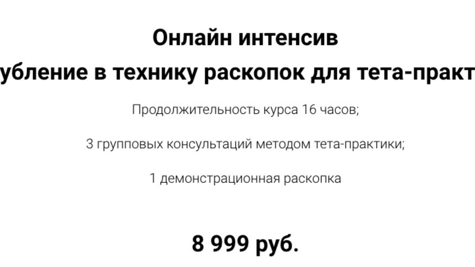 Цель интенсива: усовершенствовать базовые навыки раскопок и проработать убеждения, блокирующие успешную работу с клиентом, и работу с самим собой.