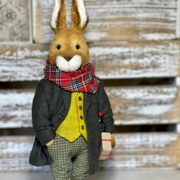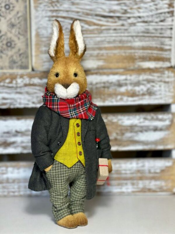 В комплект входят выкройки: зайца, брюк, жилета, воротника, пальто).