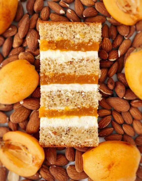 Курс Kulikova School - Торт Абрикос-Миндаль-Белый перец, автор Ольга Куликова. Нежный, сочный, ароматный и интересный торт благодаря белому перцу.
