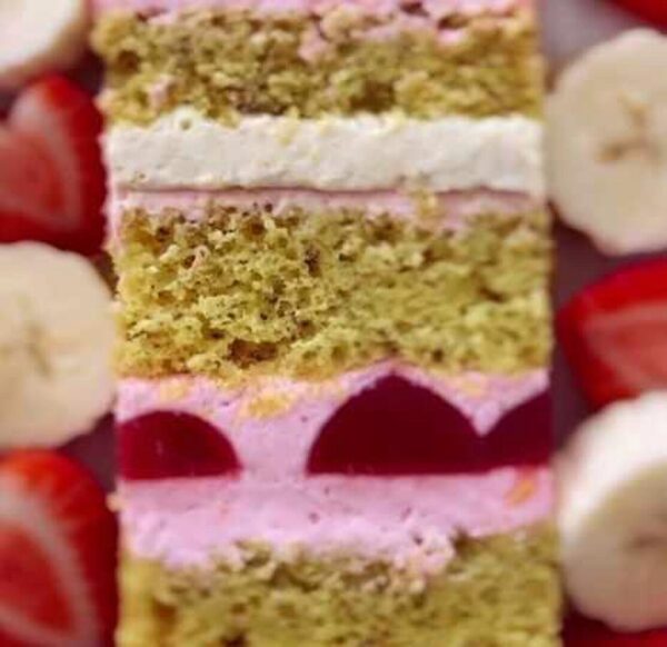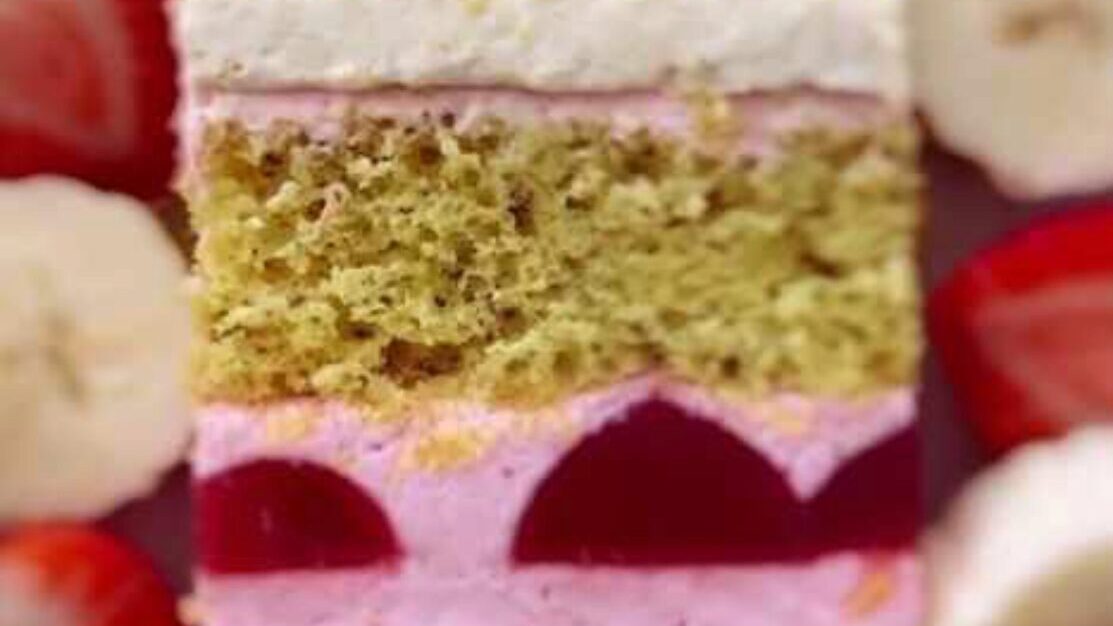 нежное рисовое тесто творожный крем центр из клубничного пюре с кусочками фрукта