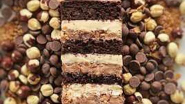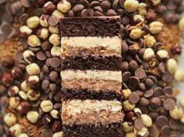 Состав шоколадного торта с ореховым безе и чизкейком: Шоколадный бисквит Пропитка Заварной крем Безе с орехами Запеченный чизкейк Крем для покрытия Формат рецепта - текстовый файл в pdf с подробным описанием процесса приготовления.