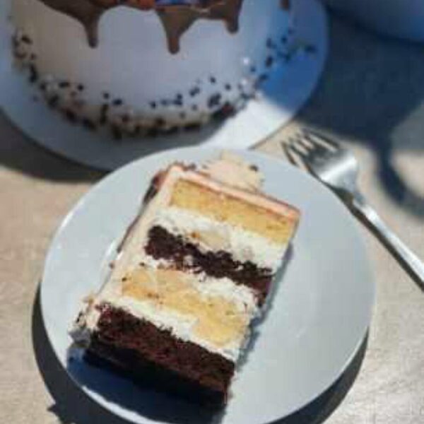 Воздушный, ванильный бисквит, нежный крем и чуть карамелизованные орешки, ванильно-молочная пропитка Без крем-чиза и маскарпоне