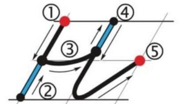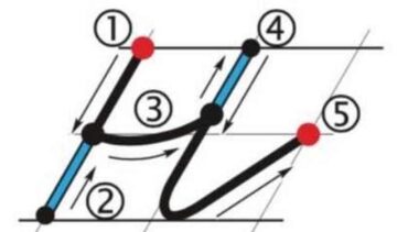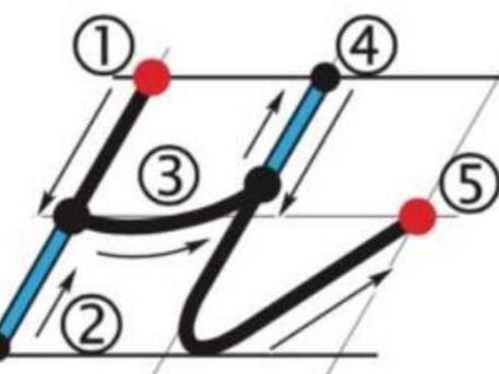 - На основном центральном изображении клетки красными точками обозначены начальная, финальная точка и точки основных соединений.