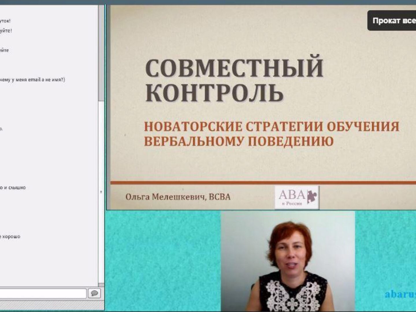 Курс ABARussia - Совместный контроль в формировании вербального поведения, автор Ольга Мелешкевич. Продолжительность: