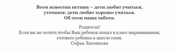Если вы не хотите,чтобы Ваш ребенок попал в класс выравнивания,