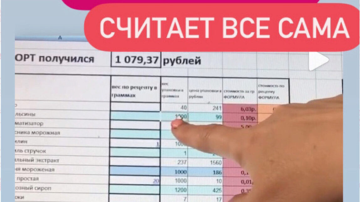 И продукты все, и цены и формулы и как рассчитывать человеко-часы.