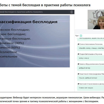 Курс Вебинар «Алгоритм работы с темой бесплодия в практике работы психолога», автор Ольга Полуэктова. Описание целевой аудитории: Вебинар будет интересен психологам, акушерам-гинекологам. Цели вебинара: Рассмотреть феномен бесплодия с психологической точки зрения и тактику психологической работы с женщинами с бесплодием.