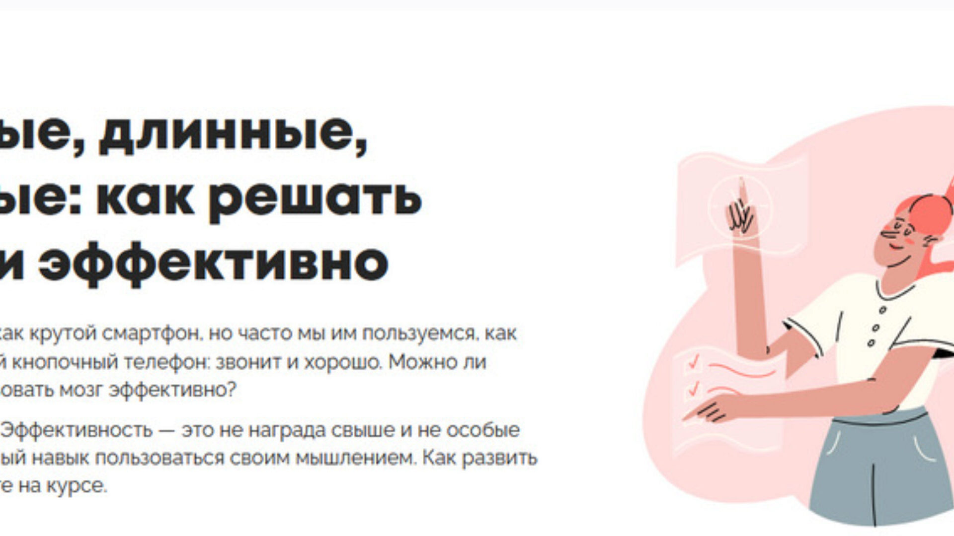 Курс Психодемия - Трудные, длинные, скучные: как решать задачи эффективно, автор Ольга Сахарова. Мозг человека — как крутой смартфон, но часто мы им пользуемся, как будто это обычный кнопочный телефон: звонит и хорошо. Можно ли научиться использовать мозг эффективно?