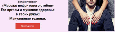 Покупая OnLine Вы получаете электронную версию видеокурса «Массаж нефритового стебля» 3 видео урока: 1. Базовые техники массажа члена 2. Vip техники массажа члена 3. Массаж члена под водой Этот тренинг для Вас, если Вы: Смело раскрываетесь новым знаниям Не боитесь дарить новые ощущения