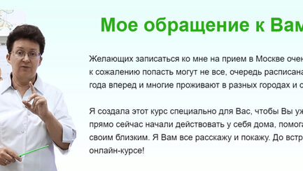 В курс входят 6 занятий Занятие №1. Что такое боль в теле и как ее убирать? Занятие №2. Самодиагностика состояния здоровья при помощи пропитки экстрактом Виватона. Занятие №3. Самостоятельная пропитка другими препаратами Виватона, которые можно наносить на длительное время. Занятие №4. Применение