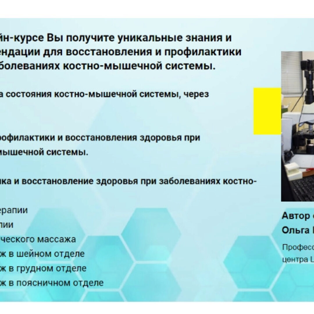 Для профилактики и восстановления заболеваний костно-мышечной системы, необходимы следующие мероприятия, изложенные в данном онлайн-курсе.