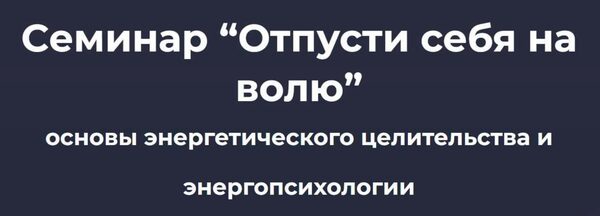 Данный семинар – это основа основ работы с энергетикой человека. Он предназначен как для тех, кто делает свои первые шаги в мире тонких энергих, так и для Мастеров, давно вставших на путь целительства. Семинар дает понимание целостности всех процессов, происходящих внутри и вне нас. А также развенчивает многие мифы, которые наплодили так называемые «просветленные» в этом мире. Семинар имеет два названия не случайно. «Наедине с собой» – это начало процесса самопознания «без прикрас». «Отпусти себя на волю» – это ощущение разительных перемен после того, как воспользовавшись предложенными методиками, учащиеся избавляются от конкретных энергетических блокировок и паразитов , и энергия начинает циркулировать в режиме полной энергетической свободы. Вот где проявляет себя Свобода Воли!