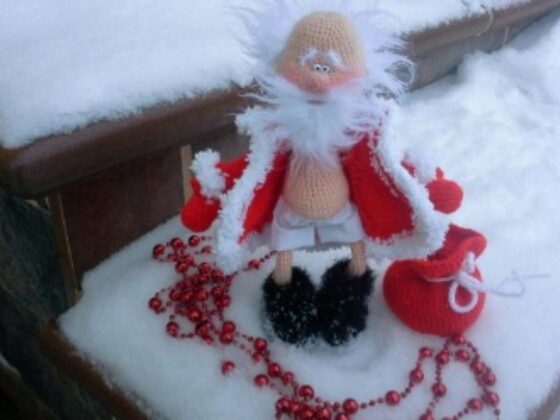 Курс МК Дед мороз с огоньком крючком, автор Ольга Цепелева. МК содержит подробное описание изготовления и сборки деталей , подкрепленное множеством фото и рекомендацией по выбору пряжи и инструментов. Материал будет полезен людям умеющим вязать крючком, он не содержит уроков вязания, а описывает процесс изготовления игрушки. При использовании рекомендуемых материалов игрушка получается ростом 20см