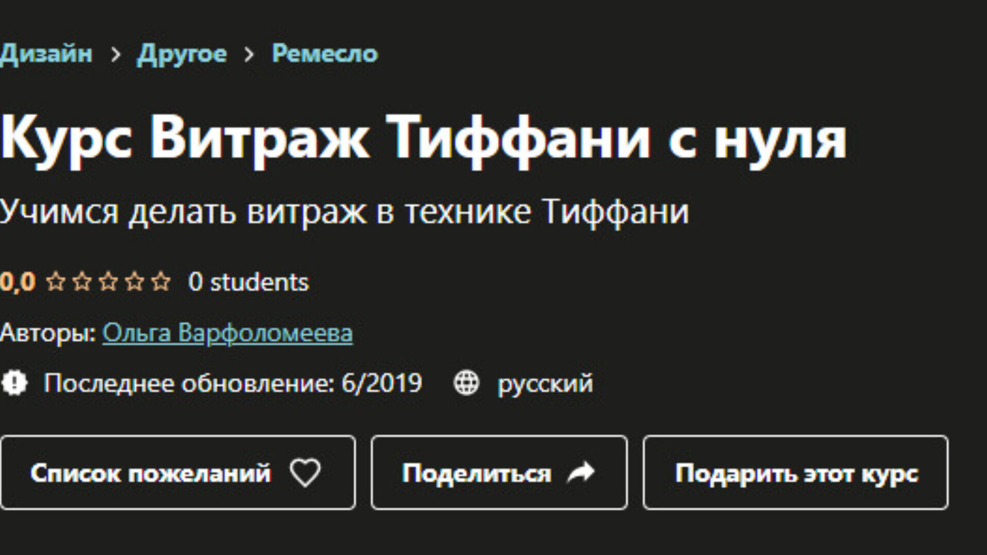 Ольга Варфоломеева «Курс Витраж Тиффани с нуля» — Udemy слив скачать