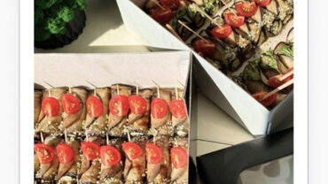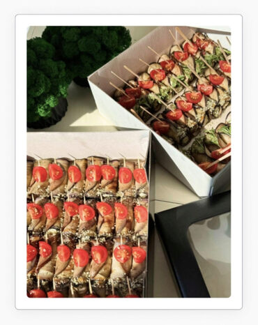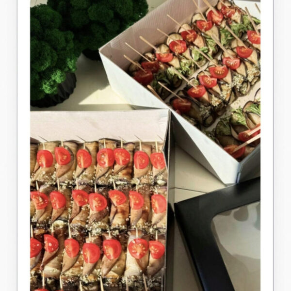 Сборник рецептов фуршетные закуски. - Канапе с моцареллой и черничным соусом - Намазка для крокетов - Тар-тар из говядины с пикантным соусом - Тар-тар из лосося - Брускетта с манго и креветками - Брускетта с запечёной свёклой - Брускетта с запечёными овощами - Брускетта стейк & песто - Рулетики