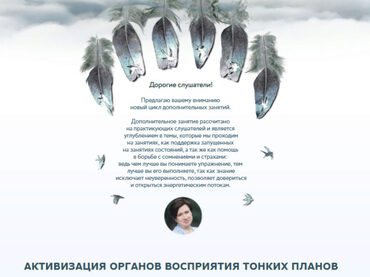 Да, Вы можете получить получить бесплатно фрагмент курса «Активизация органов восприятия тонких планов», просто напишите на почту или в телеграм