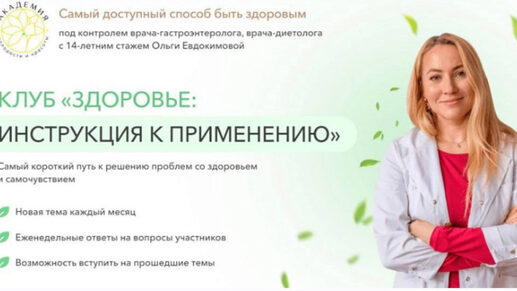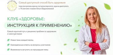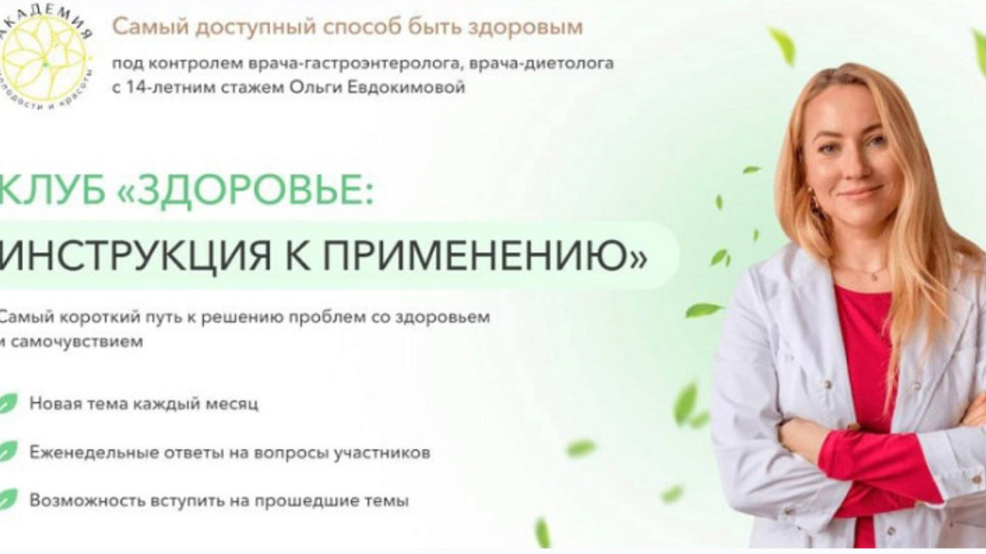 Клуб «Здоровье: инструкция к применению» – это: -> Решение ваших конкретных проблем. Без лишней теории и долгих лекций. Только практические шаги. -> Новая тема по вашим запросам каждый месяц и база знаний из тем прошлых месяцев. -> Территория доказанной врачебной информации, переведенной