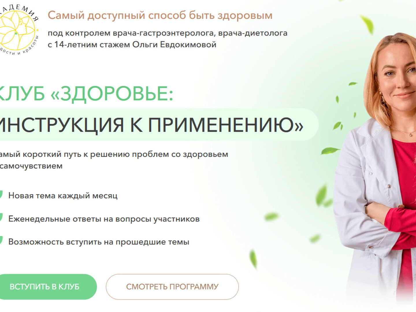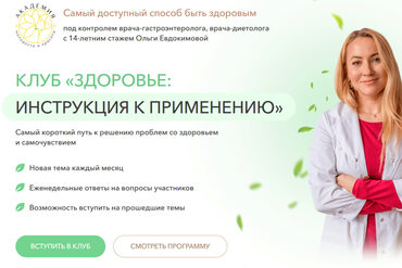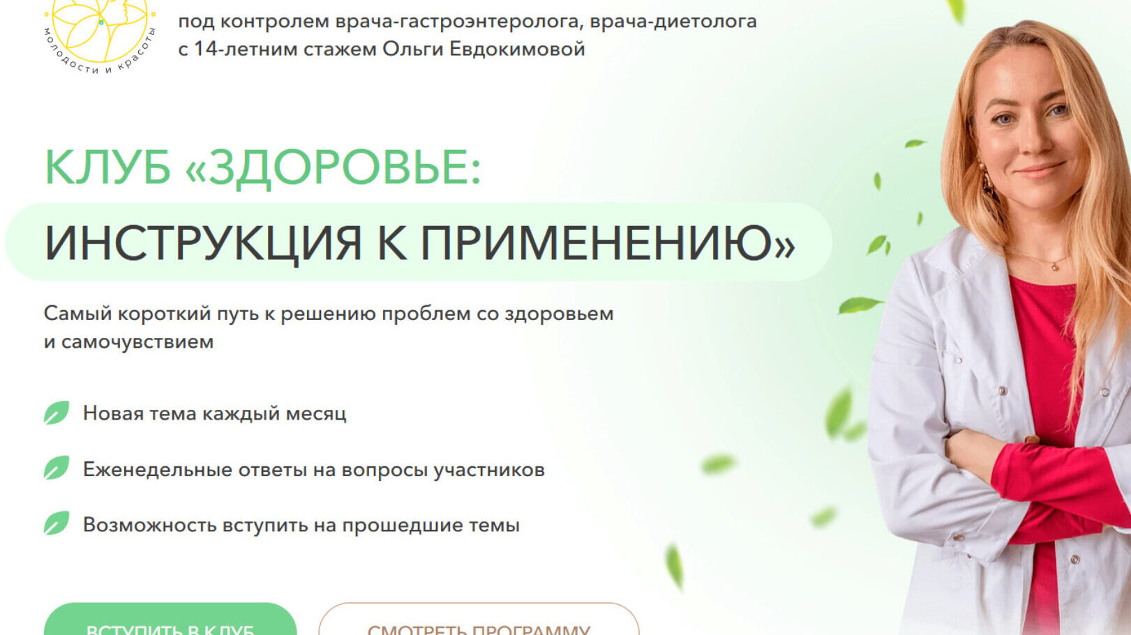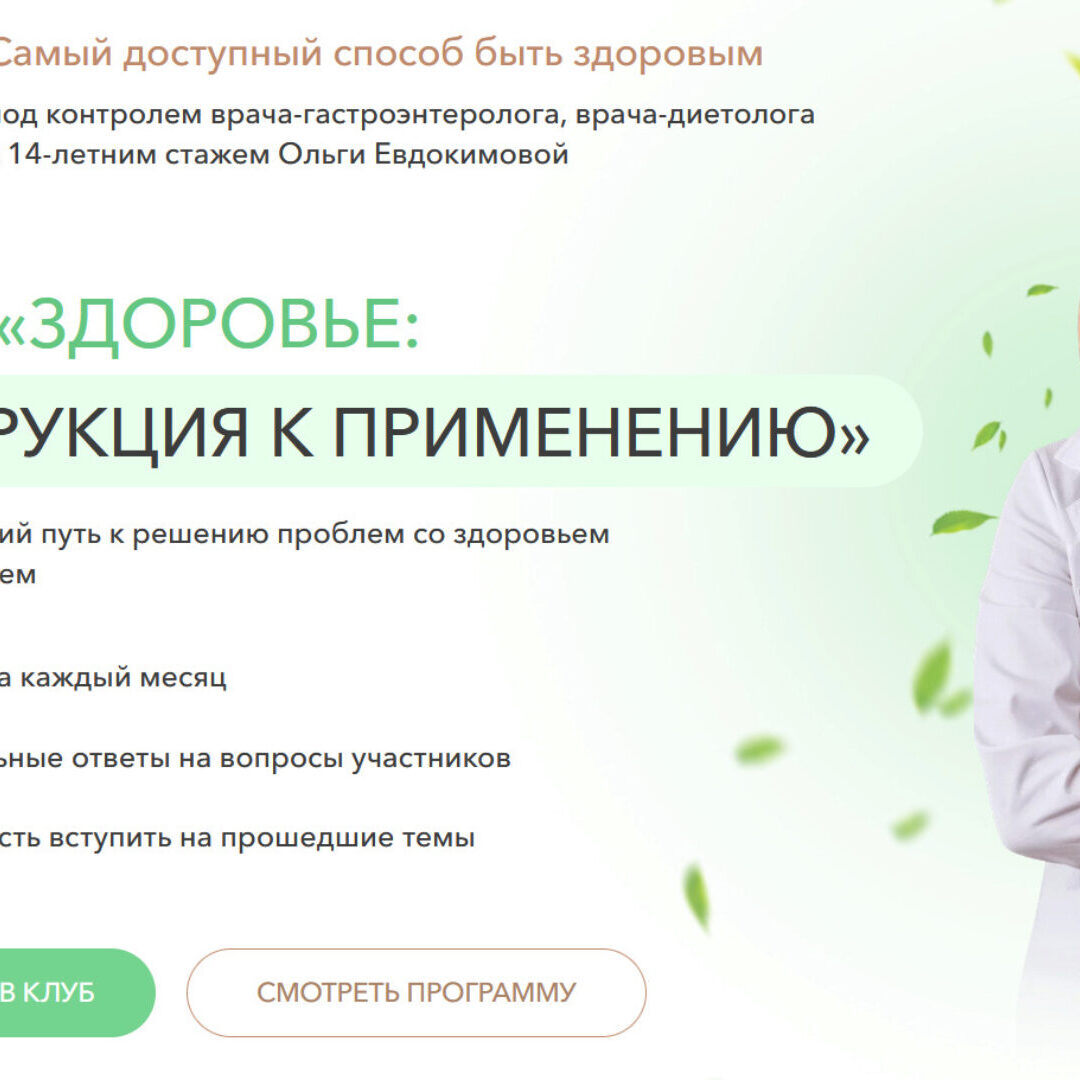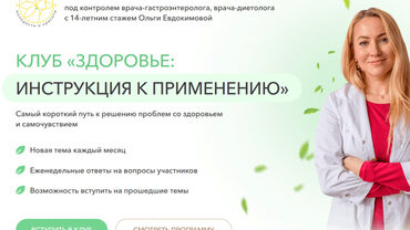 Клуб «Здоровье: инструкция к применению» – это: -> Решение ваших конкретных проблем. Без лишней теории и долгих лекций. Только практические шаги. -> Новая тема по вашим запросам каждый месяц и база знаний из тем прошлых месяцев. -> Территория доказанной врачебной информации, переведенной