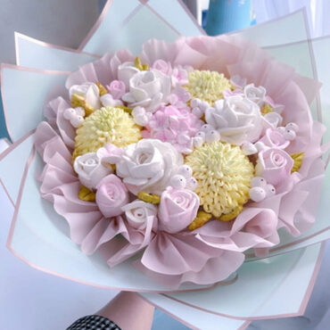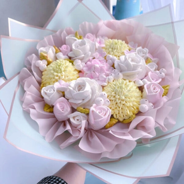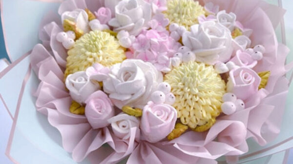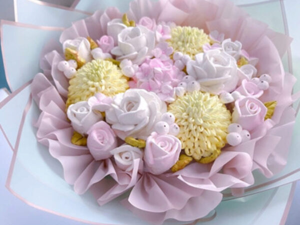 На курсе «Осенний букет» собраны самые осенние цветы - яркий подсолнух, нежная хризантема, горячий георгин, мини-бутоны розы и разная зелень. Так же будет показан новый вид шикарной упаковки букета и сборка вертикальной подбукетницы. Программа курса: Обзор кондитерских насадок Красители-распылители