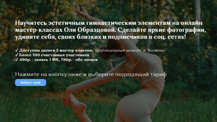 Онлайн-школа фитнеса и растяжки Оли Образцовой Сделайте спину гибкой и улучшите осанку, освойте базовые гимнастические элементы на курсе «Гибкая спина» от Оли Образцовой ✓ Проверенная методика: лучшее из 15 марафонов с 800+ участниками ✓ 13 записанных видео-тренировок доступны каждому, в удобное