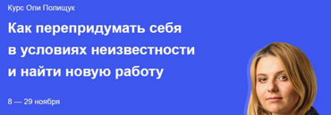 Отзывы о курсе «Как перепридумать себя в условиях неизвестности и найти новую работу. Самостоятельный» от Оли Полищук