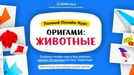 Оригами: животные [Skillberry]. За время онлайн-курса Ваш ребенок освоит технику оригами и сделает 20 поделок, даже если никогда этого не делал.