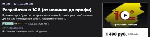 Геннадий Войтс «Разработка в 1С 8 (от новичка до профи)» — Udemy слив скачать