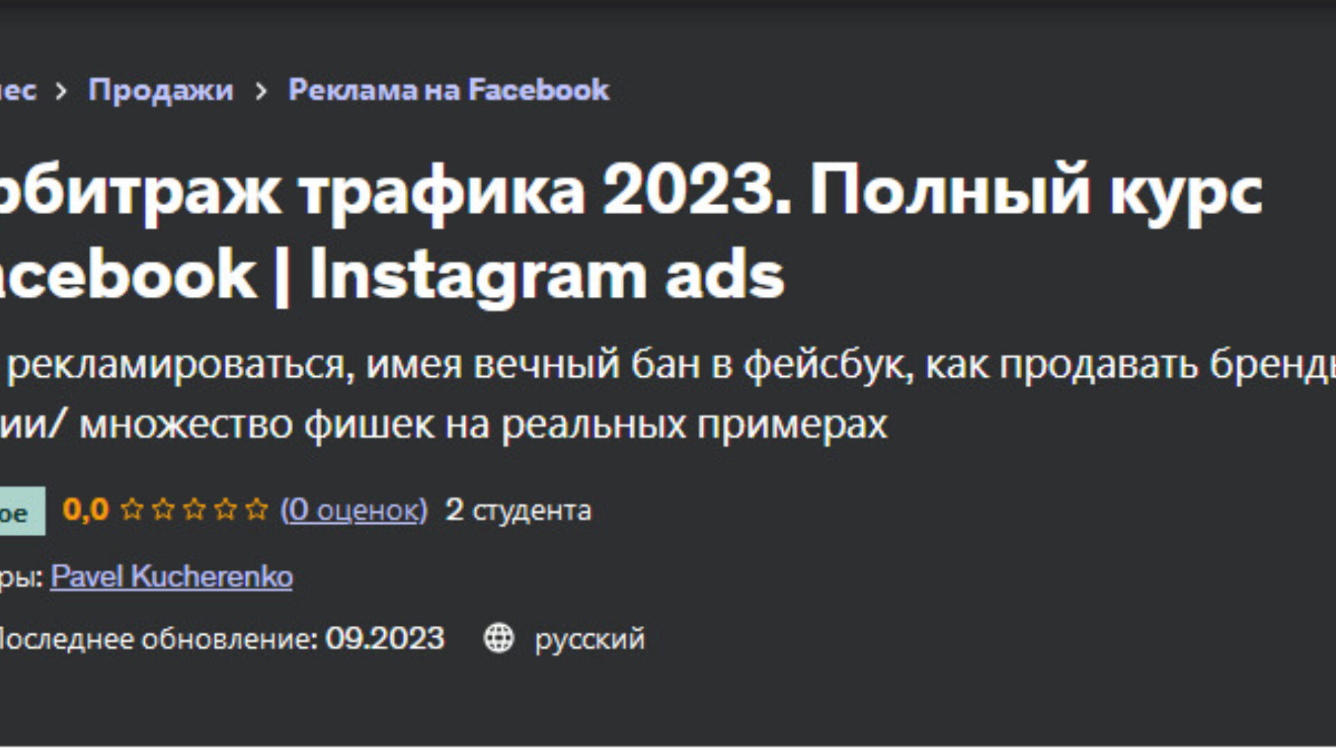 Pavel Kucherenko, Павел Кучеренко «Арбитраж трафика 2023. Полный курс Facebook слив скачать