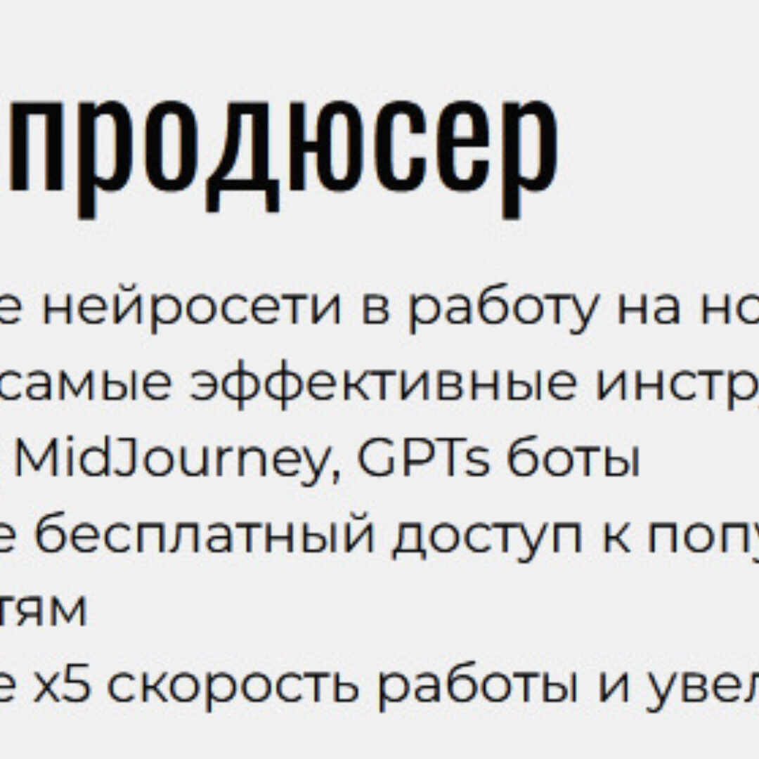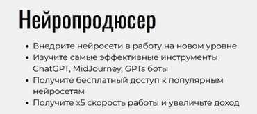 ЗАЧЕМ ТЕБЕ ИДТИ НА КУРС? Если ты хочешь научиться удаленно зарабатывать от 50 000 в месяц без длительного сложного обучения Если ты хочешь научиться делать контент в пару кликов через нейросети и благодаря этому повысить свой доход! Если ты хочешь оптимизировать свой бизнес или быстрее выполнять