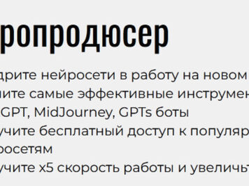 - Модуль 4-5. Нейросети для блога и маркетинга. Книга за день. Контент план в 1 клик. Портрет ЦА. Упаковка бизнеса