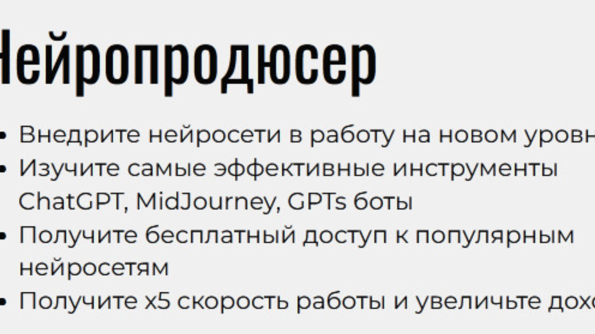 Как ускорить свою работу и освободиться от рутины с помощью искусственного интеллека Узнайте, как ИИ и нейросети могут ускорить вашу работу и избавить от рутины. В этом курсе мы расскажем о нейросетях, таких как ChatGPT, Google Bard, Claude и др., их возможностях и применении в бизнесе. Погрузитесь