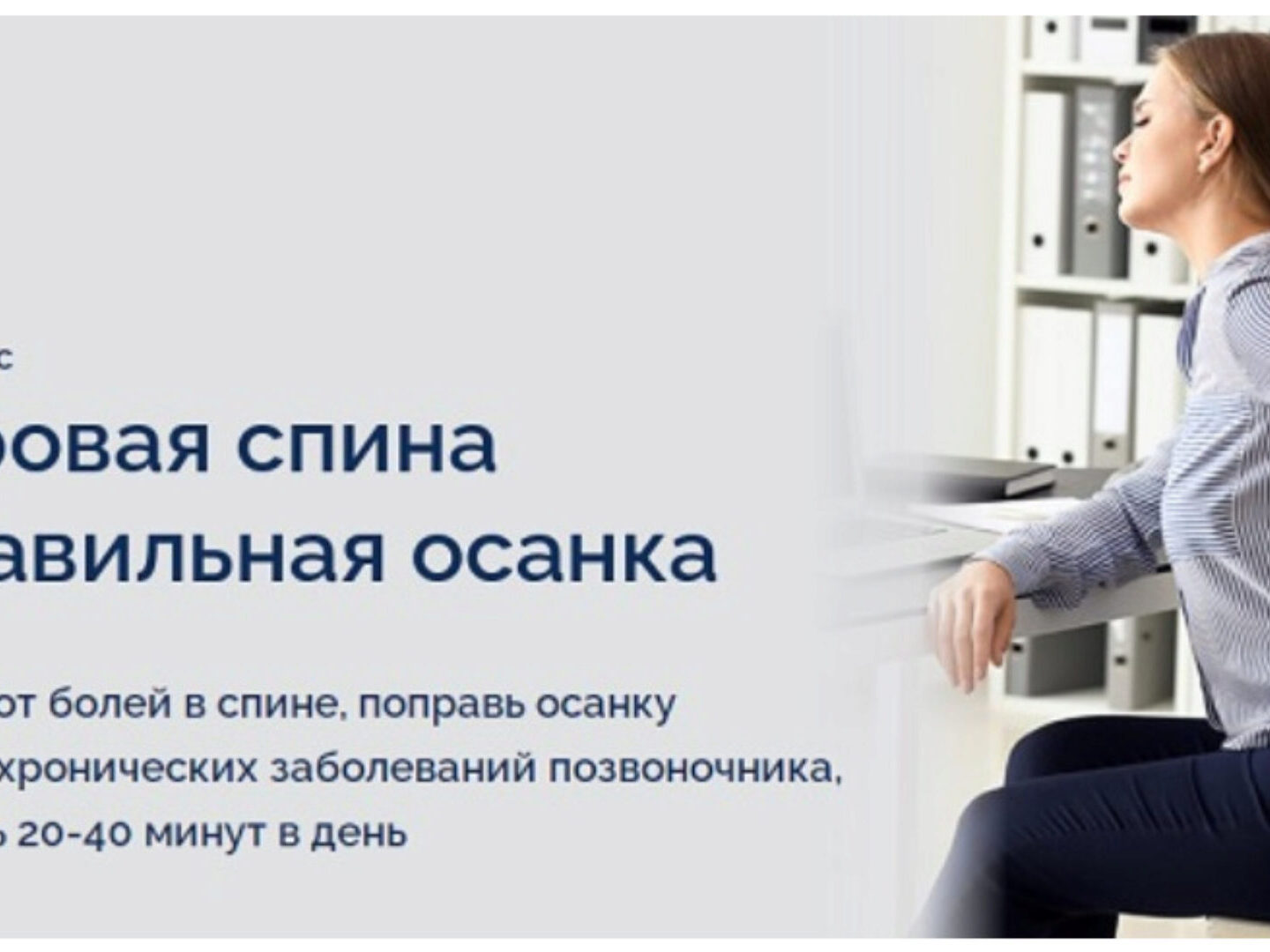 доровая спина и красивая осанка. Тариф Премиум Этот курс для вас, если: Cтать участником курса Вы мучаетесь от боли в пояснице Хотите сохранить здоровую спину даже в солидном возрасте Испытываете боли между лопатками после работы Чувствуете боль в области шеи после работы На курсе вы: Избавитесь от