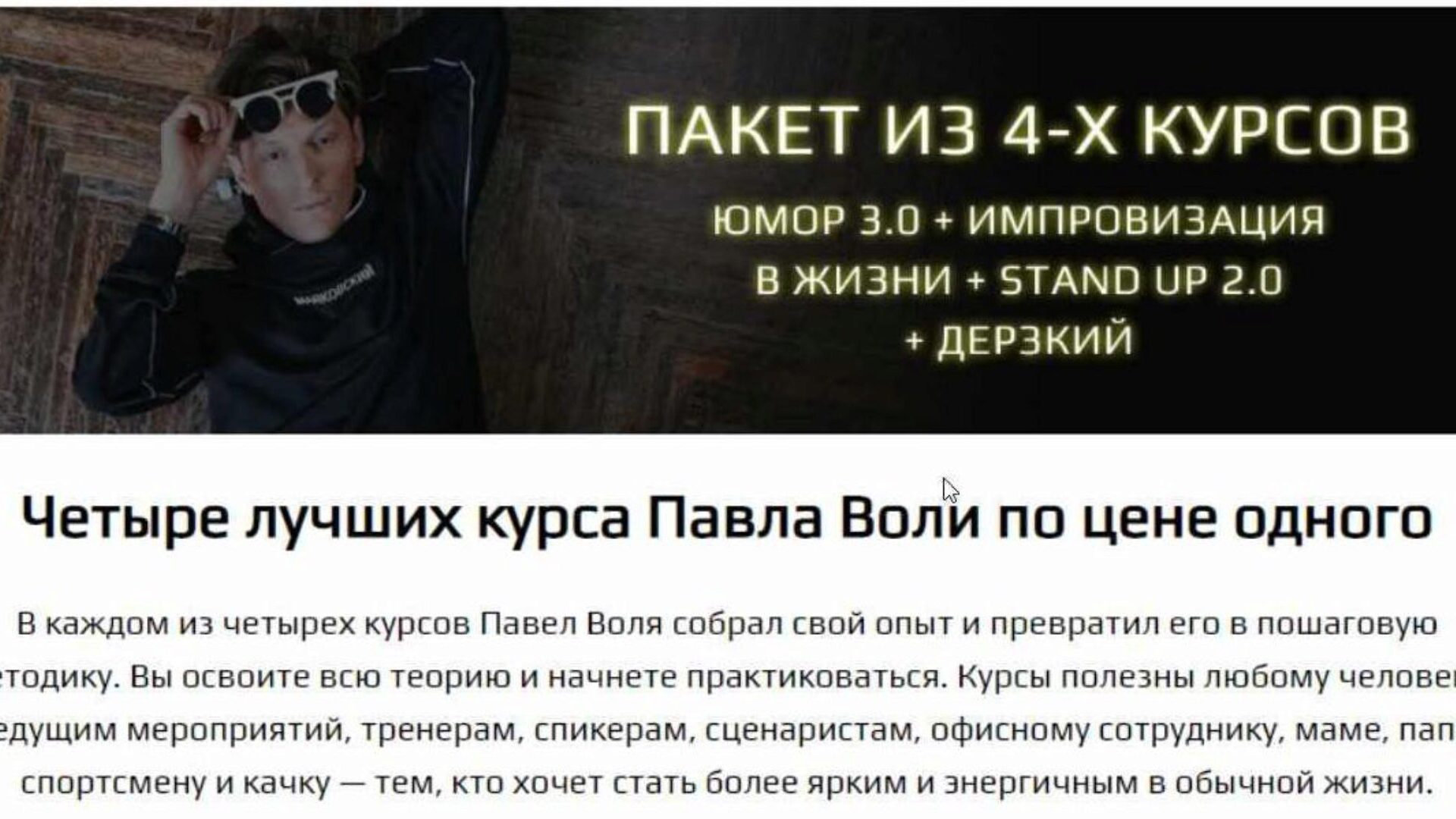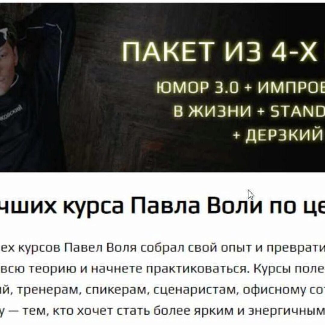 Павел Воля «Юмор: Начало 3.0 + Импровизация + Stand up 2.0 + Дерзкий» слив скачать