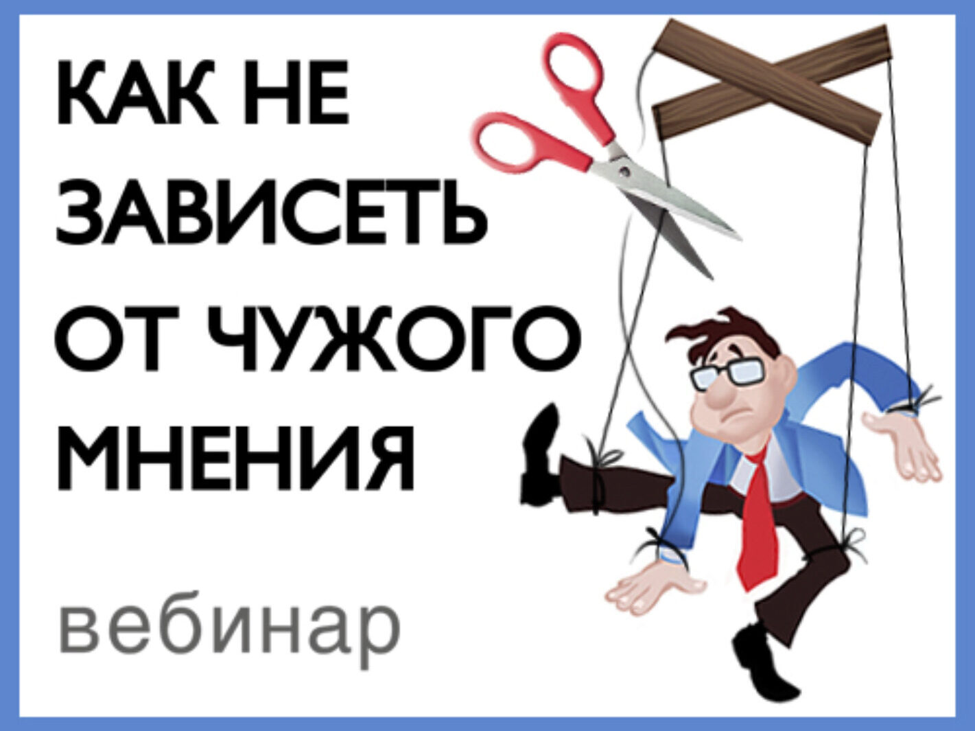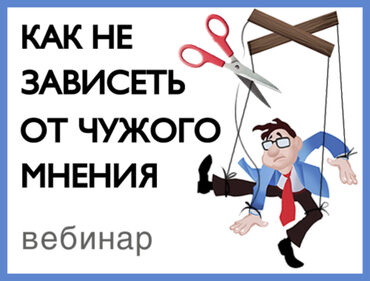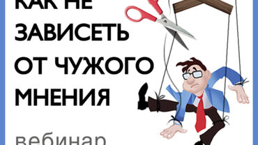 На вебинаре я расскажу о том, как выделить положительный момент зависимости от чужого мнение и отрицательный. И что с ними делать, а чего не делать. Дело в том, люди обычно сильно преувеличивают важность чужого мнения. Например, мама сказала дочери: «Ты толстая». И теперь это «правда». Нет, не так. Теперь это «ПРАВДА!!!» Самая главная «правда» из всех которые могут быть. То есть, по сути, дочь не раздумывая берет единственный вариант чужого мнения авторитетного для нее человека и начинает пользоваться только им.