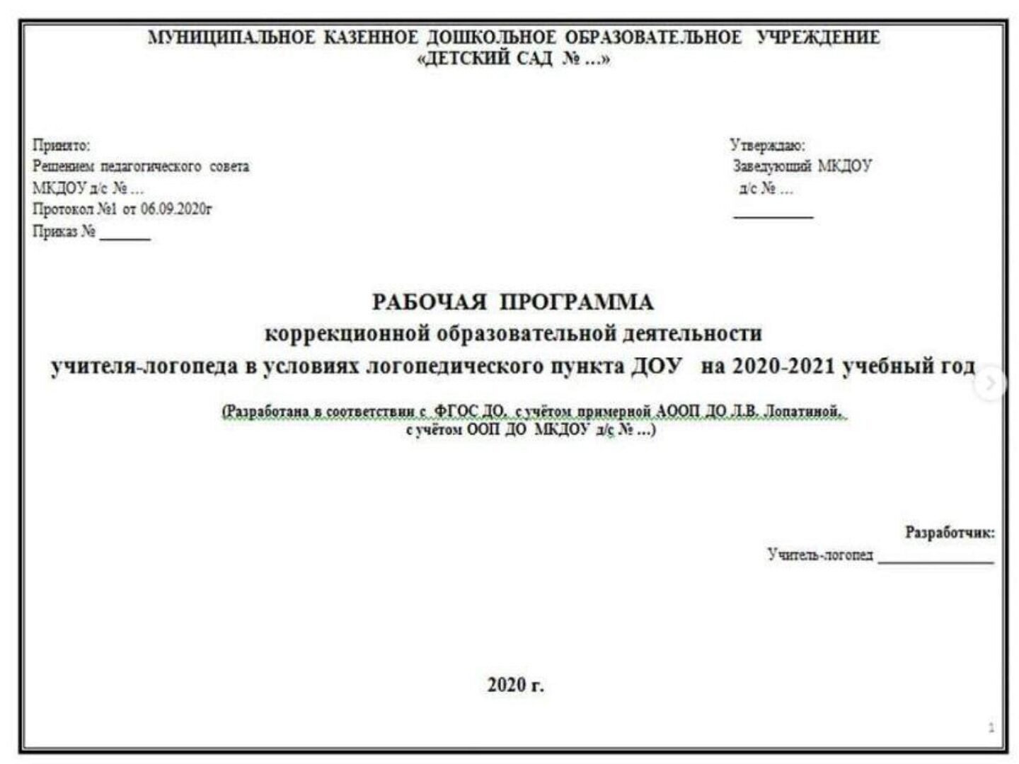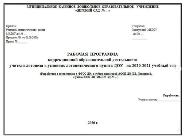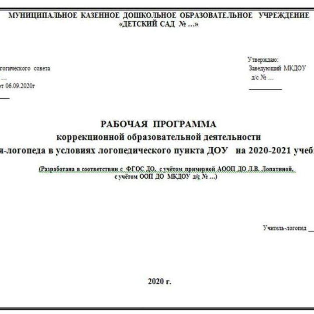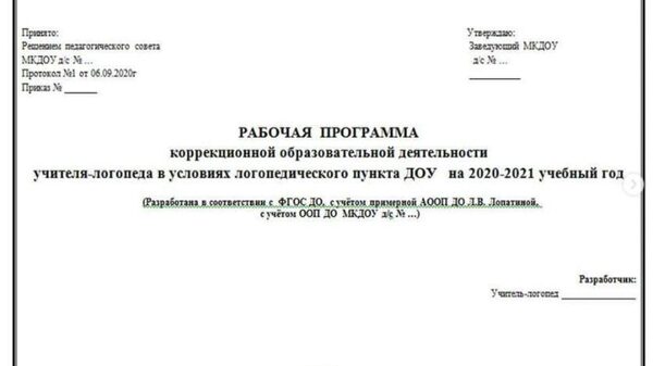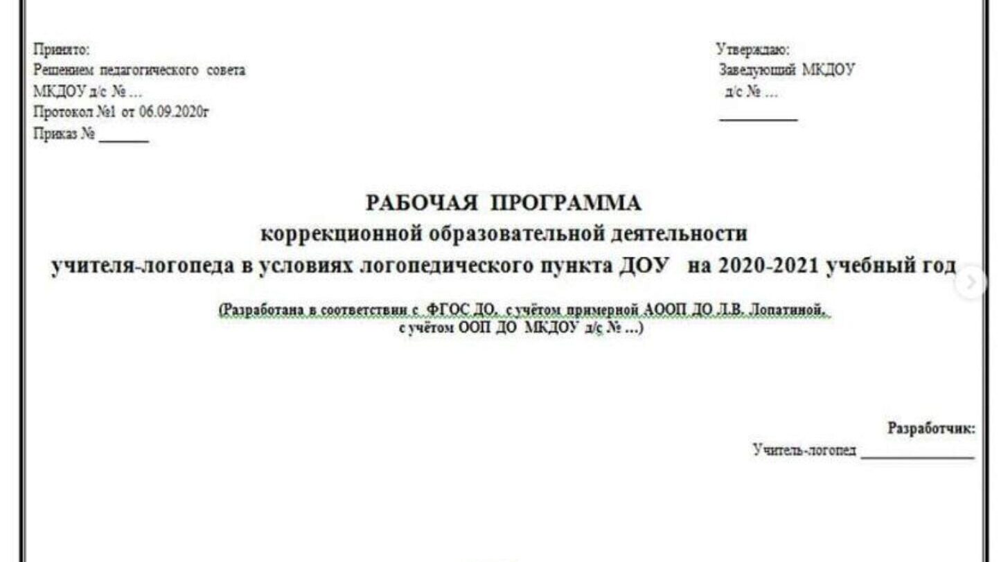 Ольга Прудникова «Рабочая программа учителя-логопеда в условиях логопедического пункта ДОУ (по Лопатиной) + комплект документов» — logoekskluziv слив скачать