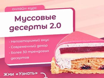 Да, Вы можете получить получить бесплатно фрагмент курса «Муссовые десерты 2.0», просто напишите на почту или в телеграм