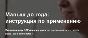 Всё о малышах 3-12 месяцев: развитие, упражнения, игры, скачки роста, сон и темперамент. О курсе Курс-пособие о развитии ребёнка от 3 до 12 месяцев. Уроки в курсе поделены на блоки по возрастам: 3-6, 6-9, 9-12 месяцев. Для каждой возрастной группы есть свои упражнения, игры, способы замедления.