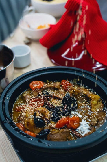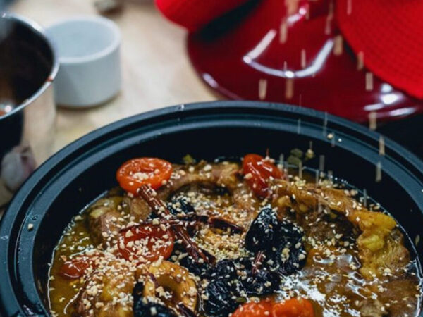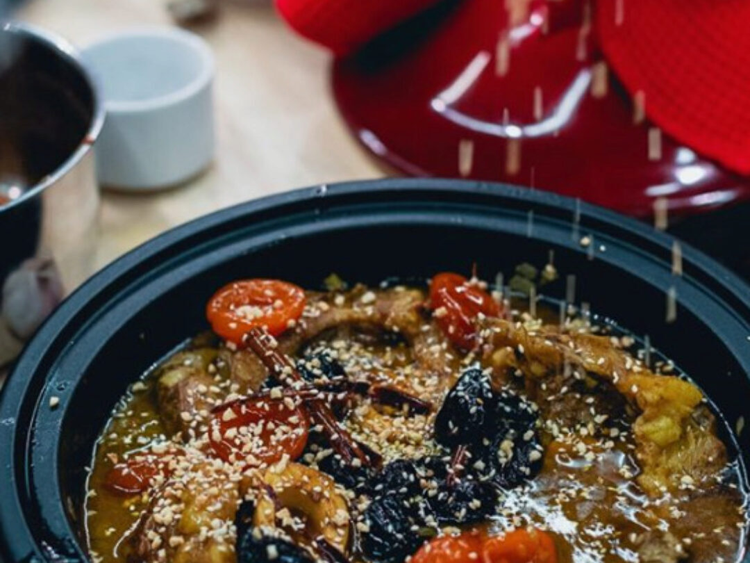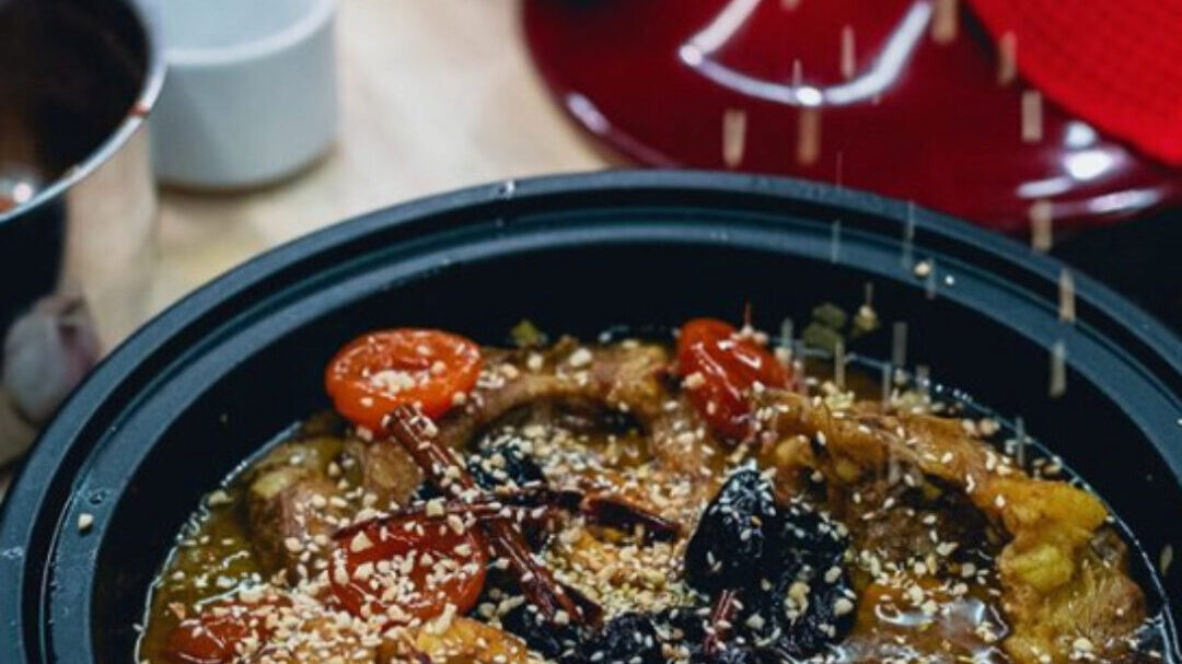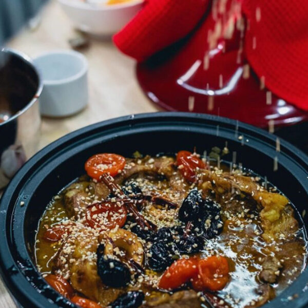 - Тажин из баранины с финиками, шалотом, миндалем и фисташками