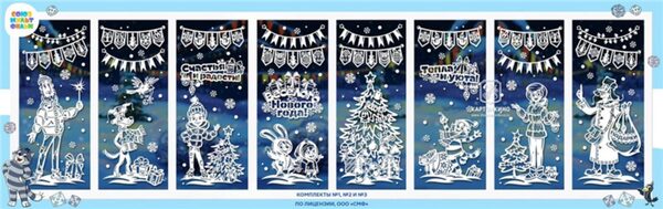 Благодаря наличию 3-х комплектов шаблонов в 3-х масштабах Вы легко сможете составить разнообразные декоративные композиции и гармонично разместить их на окнах или других поверхностях самых разных форматов или даже украсить большие многосекционные окна (либо несколько окон одного интерьера).