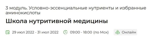 [PreventAge] Школа нутритивной медицины. 3 модуль. Условно-эссенциальные нутриенты и избранные аминокислоты. ВНИМАНИЕ. Материал выдается в аудио-формате (3 дня обучения) + методическое пособие электронный документ