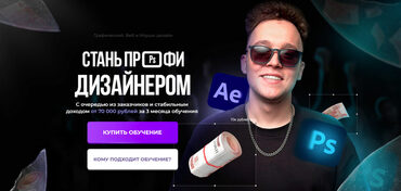 - Научишься дизайнить рекламные креативы, упаковки соц.сетей, превью для YouTube, афиши, листовки/визитки/флаеры, сайты…