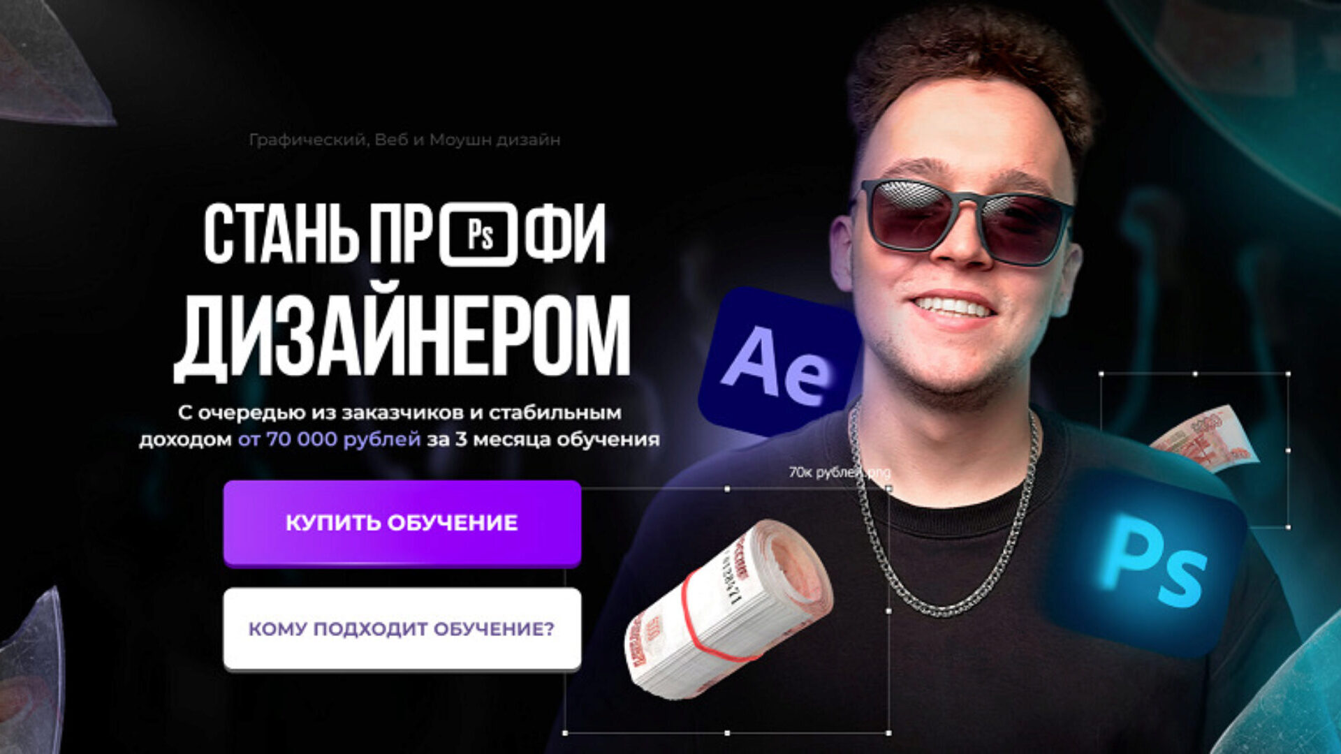 - Будешь на проффесиональном уровне владеть такими программами, как Photoshop, After Effects, Tilda